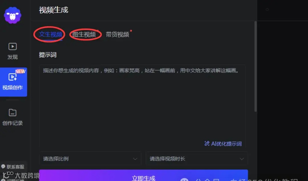 2、视频创作的,包括做你的数字人,你的声音,AI文生视频,图生视频等