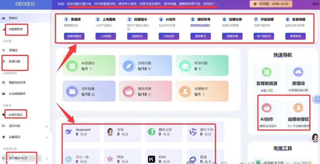 大概长得如上图。当然,你也可能说我看国内GEO系统大同小异,的确如此,其实就是看服务和效果了嘛,这里效果不是甲方理解那个效果,目前GEO还是品牌推广为主,它这个说也可以留微信,账号需要企业自己准备为主哈。