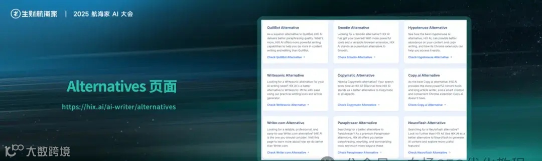 ③竞品对比页面(Alternative Pages):例如,以“AI视频生成”为例,可以创建“Midjourney的替代品”、“Runway的替代品”等页面。