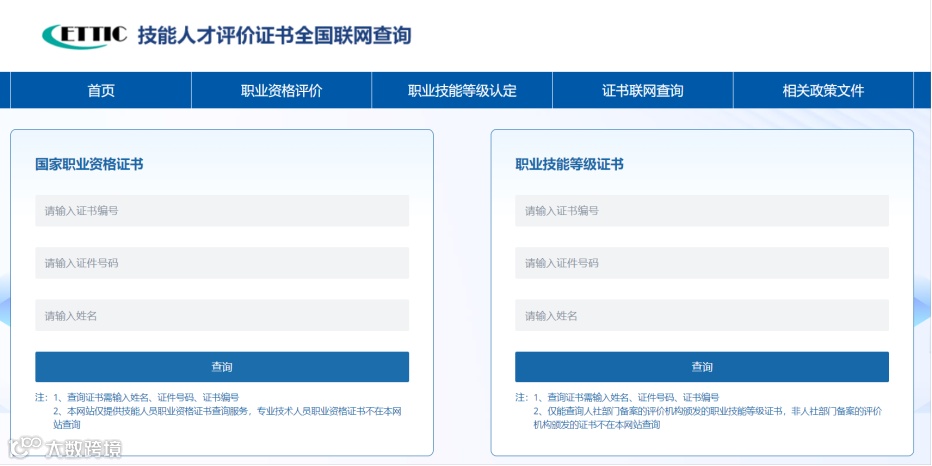 技能人才评价证书全国联网查询:http://jndj.osta.org.cn