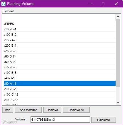 setup form !!pipeflushinglist .lisElement 'Element' width 50 hei 20button .bntAdd 'Add' at xmin.lisElement ymax + 0.1button .bntAddMember 'Add member'button .bntRem 'Remove'button .bntRemall 'Remove All'text .result 'Volume' at xmin.bntAddMember ymax + 0.5 width 25 is stringbutton .Calculate 'Calculate'exitdefine method .pipeflushing()!this.formtitle = 'Flushing Volume'!this.bntAdd.callback = '!this.AddCE()'!this.bntAddMember.callback = '!this.AddMember()'!this.bntRem.callback = '!this.Remove()'!this.bntRemall.callback = '!this.lisElement.dtext = array()'!this.Calculate.callback = '!this.Calculate()'endmethoddefine method .AddCE()!list = !this.lisElement.dtext!name = !!ce.fullnameif(!list.Find(!name).size() gt 0)thenreturnendif!list.append(!name)!this.lisElement.dtext = !listendmethoddefine method .AddMember()!list = !this.lisElement.dtextdo !x value !!ce.member!name = !x.fullnameif(!list.Find(!name).size() gt 0)thenreturnendif!list.append(!name)!this.lisElement.dtext = !listenddoendmethoddefine method .Remove()if(!This.lisElement.val eq 0)thenreturnendif!list = !this.lisElement.dtext!list.Remove(!This.lisElement.val)!this.lisElement.dtext = !listendmethoddefine method .Calculate()!total = 0do !x value !this.lisElement.dtext!element = !x.dbref()handle anyskipendhandlevar !members coll all bran member for $!elementdo !item value !members!element = !item.dbref()if(!element.type eq 'TUBI')then!od = !element.para[2]!Wallthickness = !element.PWALLT[1]!len = !element.ltlength!radius = !od * 0.5 - !Wallthickness!vol = !radius.Power(2) * 3.1415926 * !len!total = !total + !volelse!od = !element.Aodiam!Wallthickness = !element.PWALLT[1]handle (2,244)skipendhandle!len = !element.Fitlength!radius = !od * 0.5 - !Wallthickness!vol = !radius.Power(2) * 3.1415926 * !len!total = !total + !volendifenddoenddo!this.result.val = !total.string('D0')endmethod