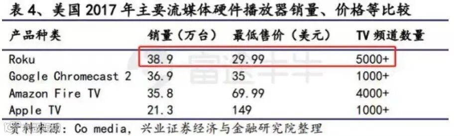 与此同时,各个流媒体平台也是Roku的潜在竞争者。这一点,从奈飞此前投资600万美元给Roku打造电视机顶盒,作为流媒体内容的播放设备就可以得知。国内的流媒体平台如爱奇艺等也制作了奇异果等投屏设备。
