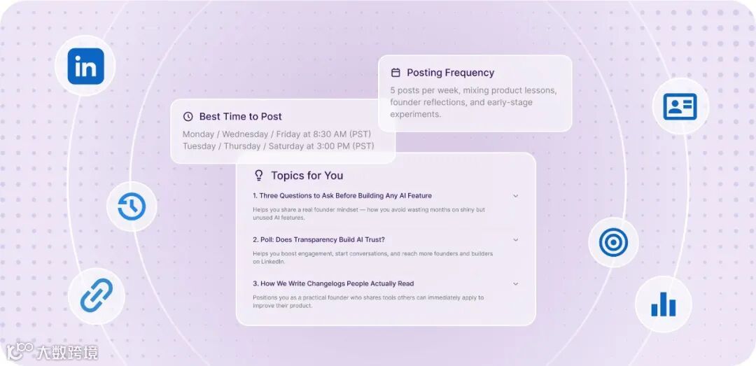 它真正有点意思的地方,在于它试图长期“管理”你的 LinkedIn 输出: