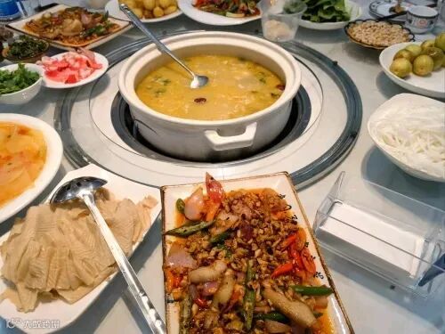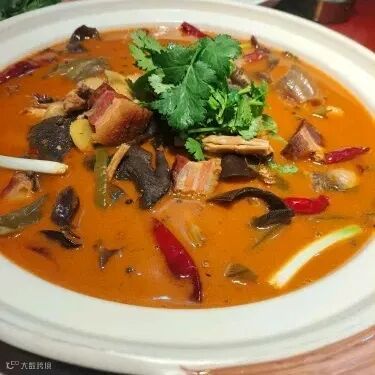 若想体验最地道的城口腊味,味汤馆是不可错过的一站。这里将腊肉的魅力发挥得淋漓尽致——腊五花、腊排骨、腊香肠在沸腾的汤锅中焕发新生。汤底配以当地特有的干土豆等山野时蔬,分量实在。烫煮后的腊肉肥瘦相间,腊香浓郁却不过咸,入口全无油腻感。