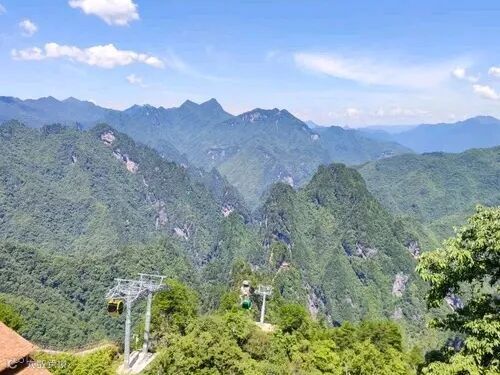 穿梭于云雾间的空中走廊,将险峻峡谷化作诗意画卷。车厢缓缓攀升,脚下是绵延的原始森林,树梢在百米之下翻涌成绿浪。远眺处,千年古寨的轮廓渐次清晰,如同悬浮在天地间的沧桑剪影。