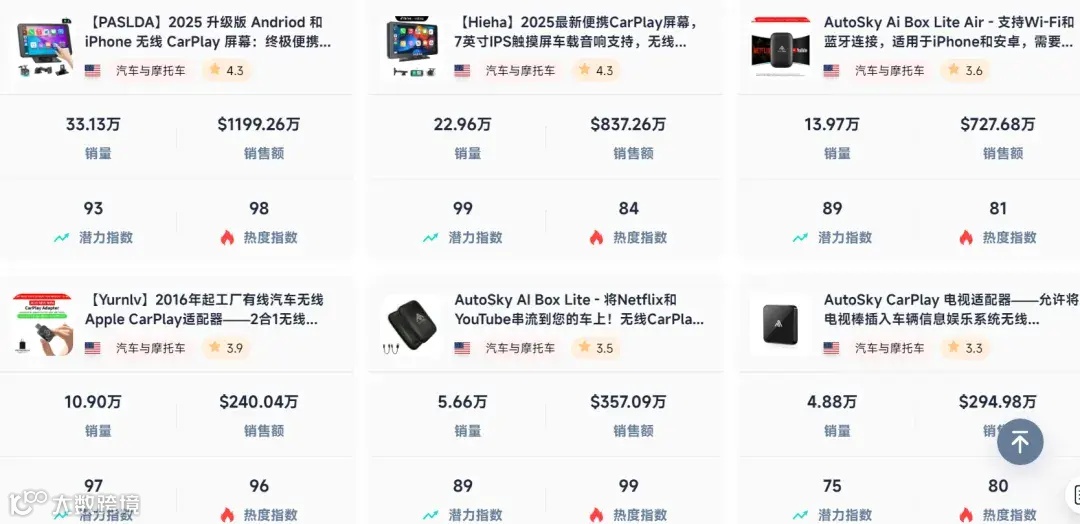 美国汽车存量市场庞大,车机互联需求明确,配合TikTok等内容平台的精准传播,CarPlay类产品已验证其爆发潜力。