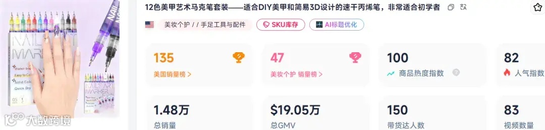 谁能想到?国内 1688 上 12 支装、进货价仅 14-16 元的美甲马克笔,搬到 TikTok 美区定价 85 元,上架 15 天就卖出 1.48 万件,狂揽 135 万销售额!