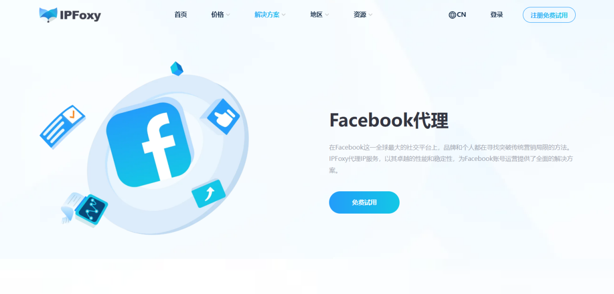 例如Facebook矩阵广告投流专家一般会使用反侦测浏览器搭配独享估定IP代理构建账号环境。IPFoxy提供的静态住宅代理 IP,能够提供真实 ISP 网络环境,减少异常登录与位置漂移,更适合 BM、广告账户、主页的长期运营。