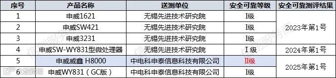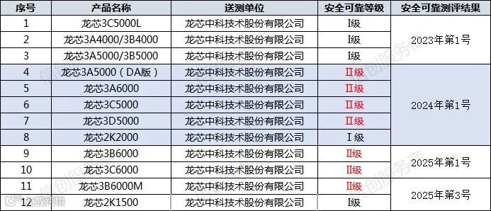 以CPU为例:以下是6大品牌芯片的安全可靠测评结果汇总(2025年第2号无新增芯片)