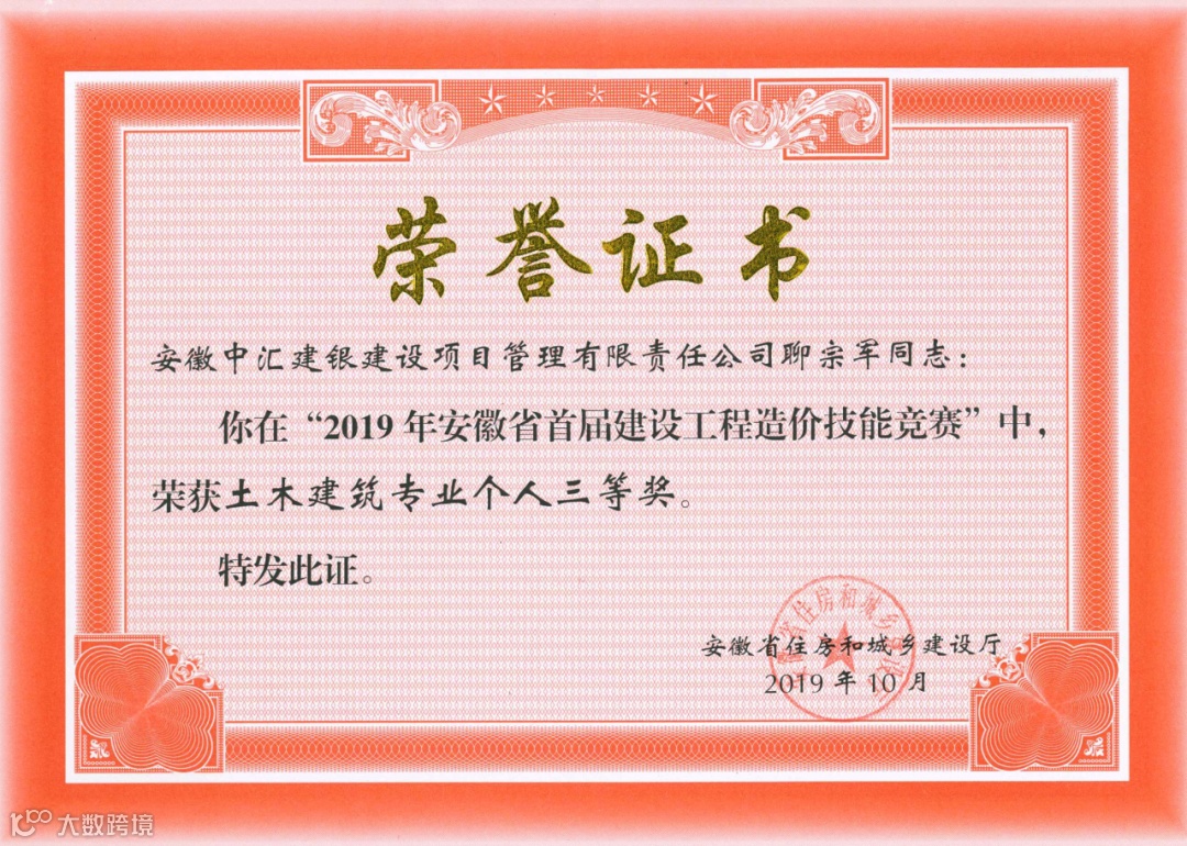 安徽省城乡住房建设系统工程造价技能大赛 · 土建专业一等奖