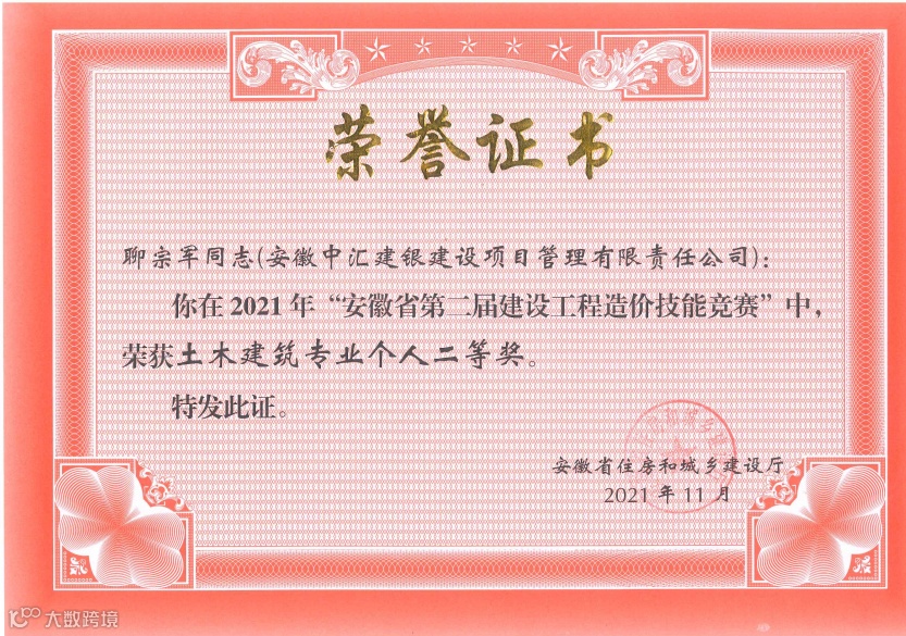 安徽省第二届建设工程造价技能技能竞赛 · 土建专业二等奖