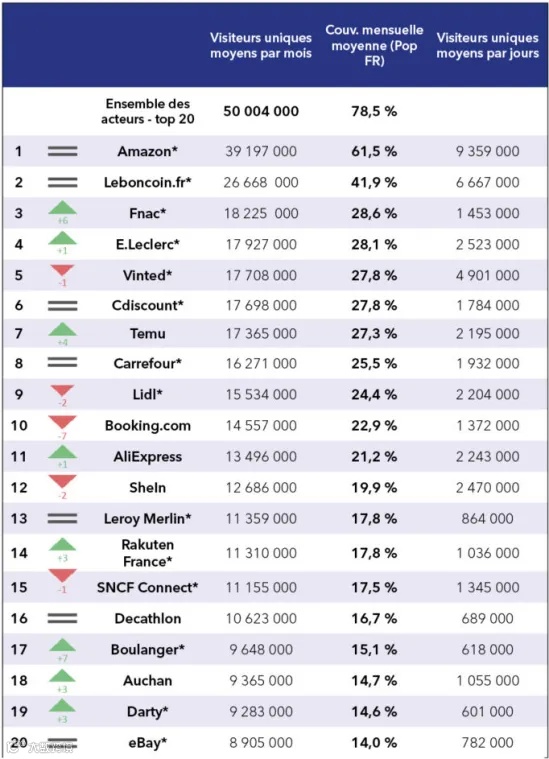 法国电商平台诸多,据23年Q4数据统计,亚马逊、Leboncoin是法国最受欢迎的电商平台,每月访客数量分别为3920万和2670万。从数据也可以看出,近两年新兴的Temu与Shein也是向好趋势。目前这两个平台也在发力欧洲市场,其影响力及流量都很可观。
