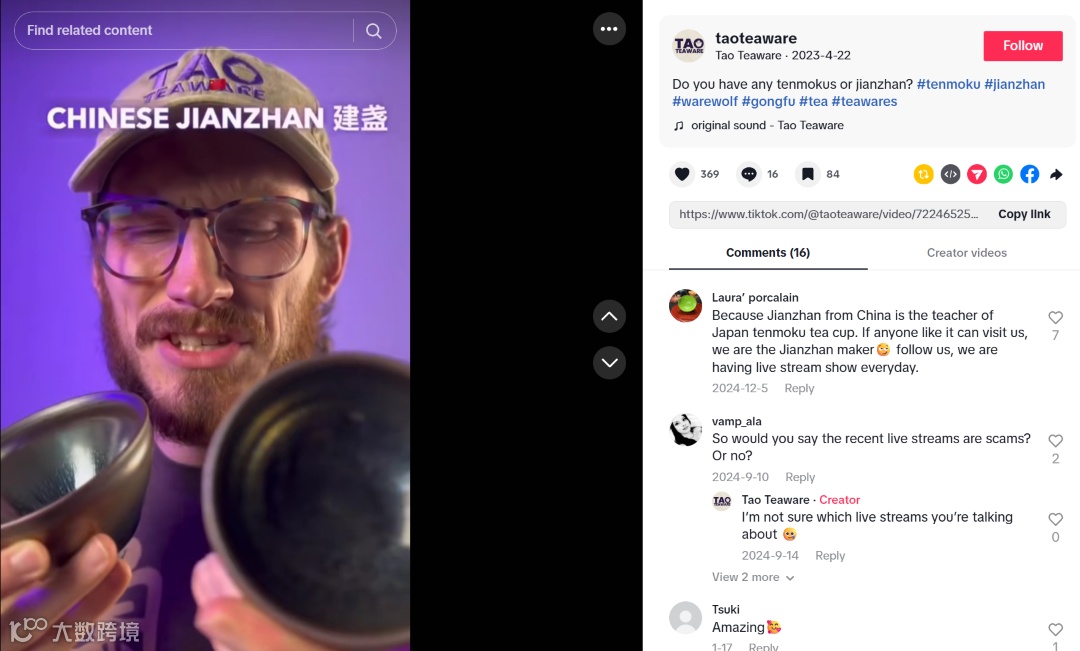 Tik Tok博主分享中国建盏与日本天目釉的区别