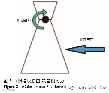 侧向力引起的主要破坏模式有喷管结构高周疲劳、发动机喉部或发动机推力矢量控制装置过载破坏, 如J-2S发动机研制过程中曾因过大的喷管侧向力而将整个发动机从万向节处剪掉, 日本LE-7A发动机在启动关机瞬间发生喷管侧向力引起的喷管冷却管破坏, SSME发动机地面反复试车过程中曾发生由于未预见的高水平侧向力引起的喷管冷却剂供应管路的破坏. 喷管侧向力产生的本质是由于流动不稳定, 产生原因可分为3大类: 喷管内部流动分离不稳定相关的因素, 包括不同流动分离形式的转换、倾斜的分离线、流动分离点附近及回流区压力脉动、气膜冷却导致的侧向力; 外部非定常因素, 即喷管外部的压力脉动, 包括抖振和背压变化, 主要是由于火箭飞行过程中产生的底流抖振效应, 2002年阿里安5ECA首飞失败的原因之一就是研发人员在喷管载荷分析时未考虑底流抖振引起喷管侧向动态载荷和流固耦合因素, 当侧向力较大时, 将引起侧向力与喷管变形的气动弹性耦合。