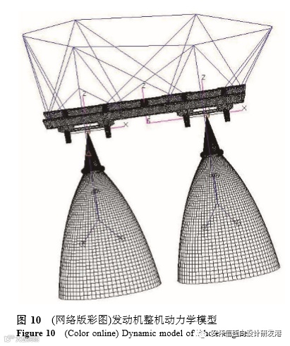 当前, 液体火箭发动机整体动力学建模及修正, 思路基本统一为: 对常温状态各关键部件进行动力学建模及模型修正, 将修正后各子部件模型组装成发动机整体模型(图10), 再通过对连接件及连接界面参数的修正获得发动机整体有限元动力学模型, 最后通过考虑载荷环境对材料特性和应力状态的影响, 获得发动机实际工作状态下的动力学模型. 存在的主要问题有: