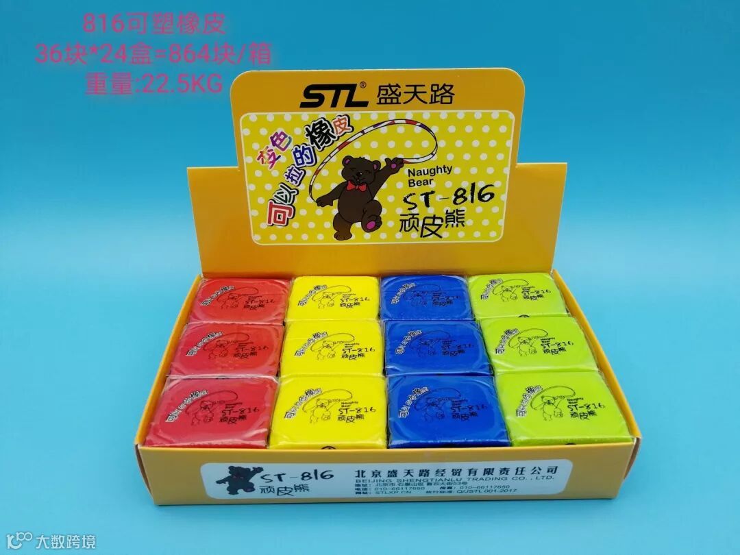 主营环保不干彩泥、各类美术办公及学生橡皮,拥有“STL”“盛天路”“皮孩儿”“顽皮熊”等自主品牌。产品采用PVC及TPR材质,符合国标及欧标安全标准,并提供欧标检测报告。