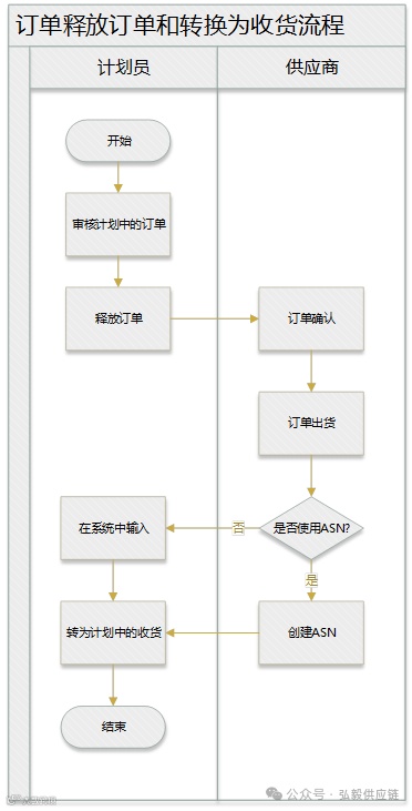 计划员需审核MRP系统推荐的采购订单,并将其转为正式订单发送给供应商。供应商确认出货后,订单将转化为计划中的收货。
