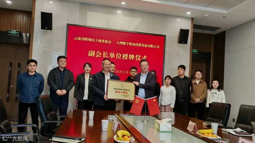 4月3日,云南省跨境电子商务协会(以下简称“云跨协”)副会长单位授牌仪式在大理数字贸易投资发展有限公司(以下简称“数贸公司”)举行。