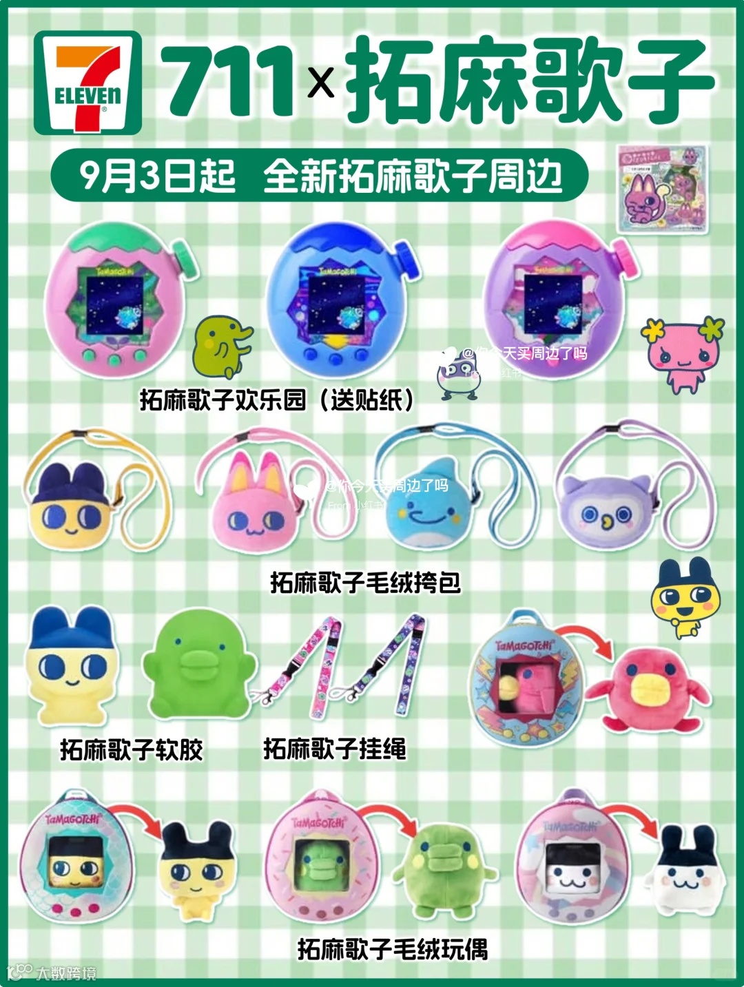 9月3日,7-Eleven中国台湾地区将上线拓麻歌子全新周边,包括欢乐园系列毛绒挎包、挂绳、软胶饰品等,唤醒童年回忆。