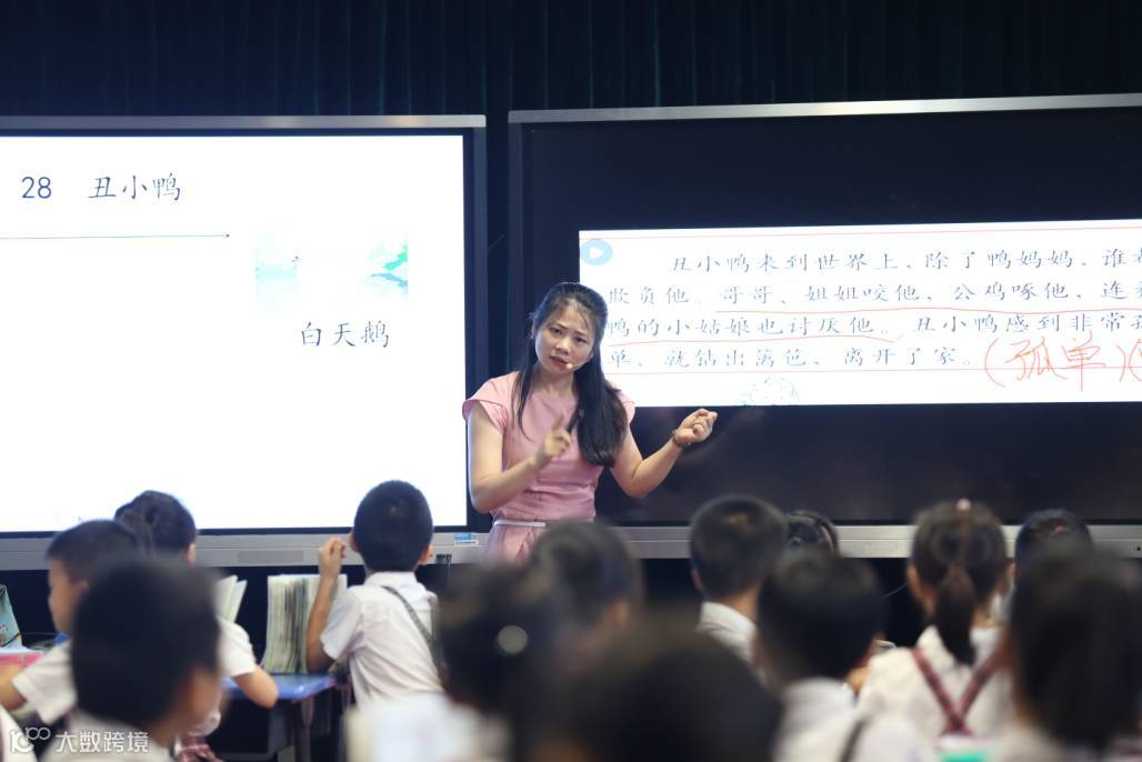 在课中,曾老师通过云平台营造富媒体、多互动的高效课堂环境,以问题引导学生层层深入感知丑小鸭的心灵情感。
