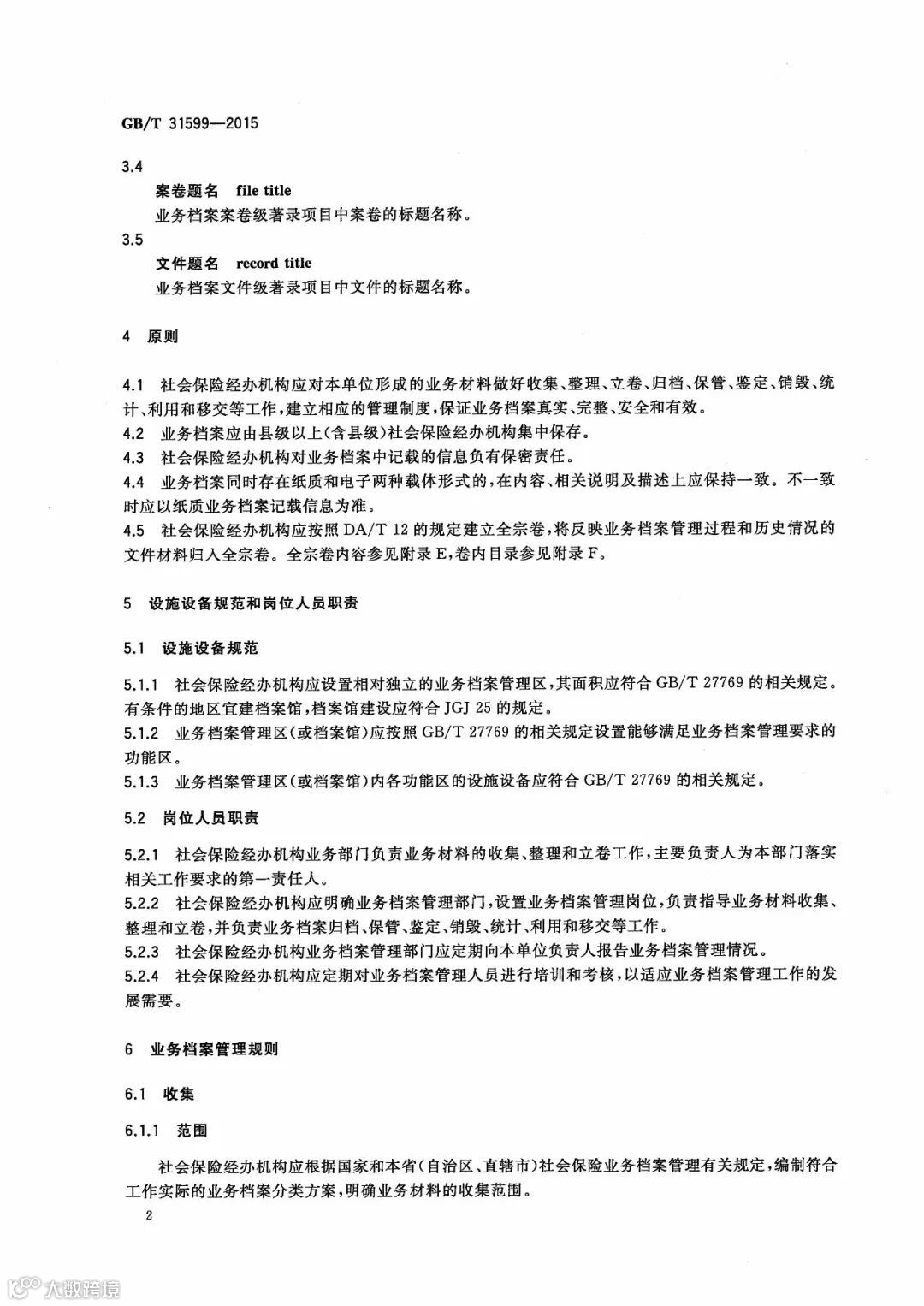 本标准规定了社会保险业务档案管理的术语和定义、原则、设施设备规范、岗位及人员职责、管理规则和信息化规范。
