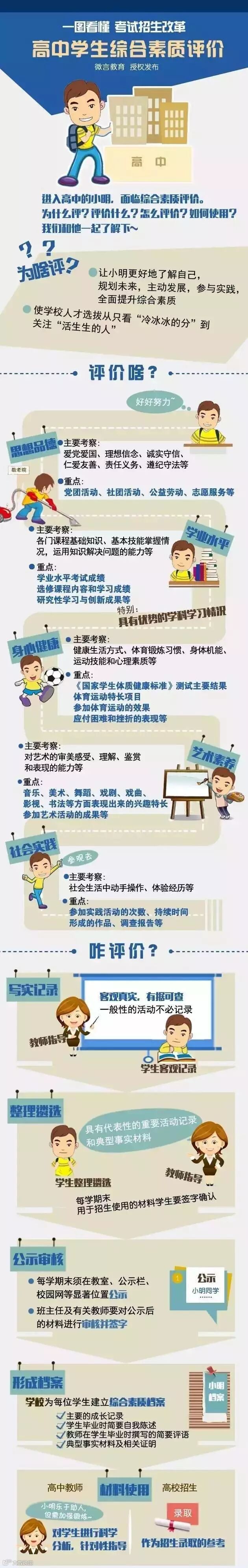 综合素质评价一般包含:思想品德、学业成就 、身心健康、艺术素养、社会实践等多个方面。