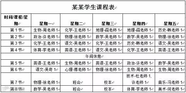 ▼ 天津中学学生个性化课表