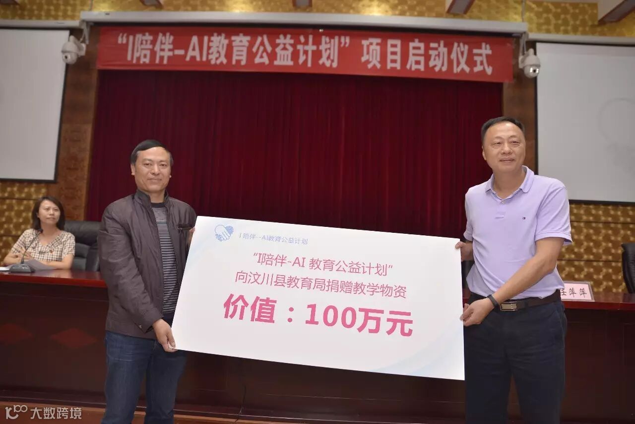 本次启动仪式上,科大讯飞即向汶川县教育局捐赠了价值100万元的教学设备及人工智能产品。