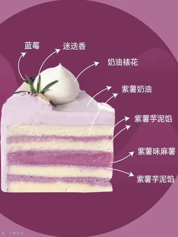 选用有机小紫薯做成紫薯泥,搭配手工制作麻薯,配以松软戚风蛋糕和细腻奶油,紫薯风味超浓郁!