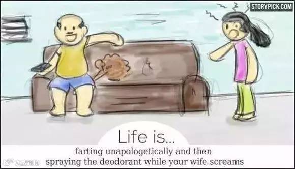 人生就是:在家毫无顾忌地放个响屁,在另一半尖叫的时候淡定地喷点清新剂;