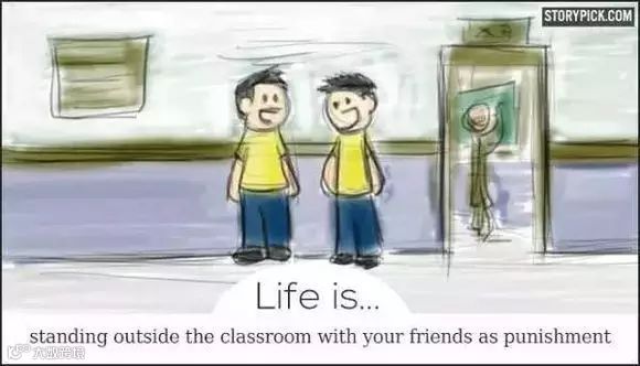 人生就是:在教室外面和你的朋友一起罚站,还有说有笑;