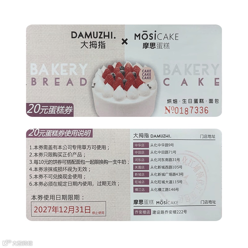 大拇指蛋糕券 20元面值: