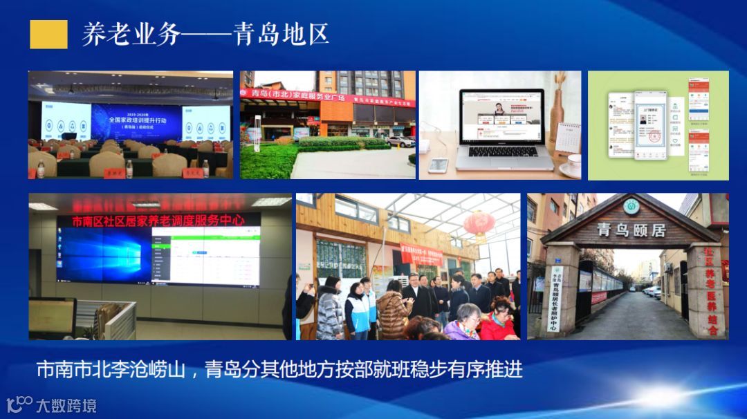 在养老方面青鸟软通致力于创建城市级融合式养老服务模式。2019年青鸟软通在财政部、民政部社区居家养老试点城市中,参与的城市数量及市场份额均遥遥领先,获得中央财政引导养老产业专项基金战略投资与支持,2019年入选国家发改委城企联动普惠养老首批试点企业,并在工业和信息化部、民政部、国家卫生健康委联合主办的“2019智慧健康养老产业发展大会”上作为两家企业代表之一在人民大会堂作了主题发言与经验分享。