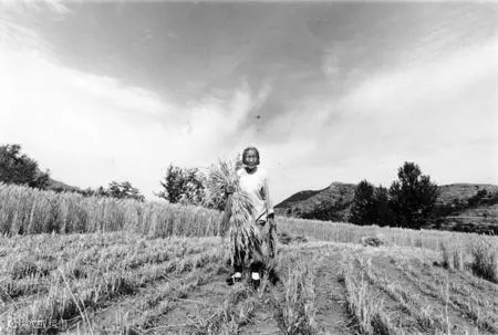 爹和外甥在责任田里播种穀子和高粱。山区播种还是用耩子,扶耧可是技术活,一边走一边摇动耧把,用摇动的快慢来控制下种的多少。这种活,爹不放心让年轻人干,还时不时地“老将出马”。