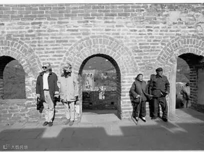 一对来自加拿大的夫妇看到爹娘双双携手登上长城,羡慕不已。