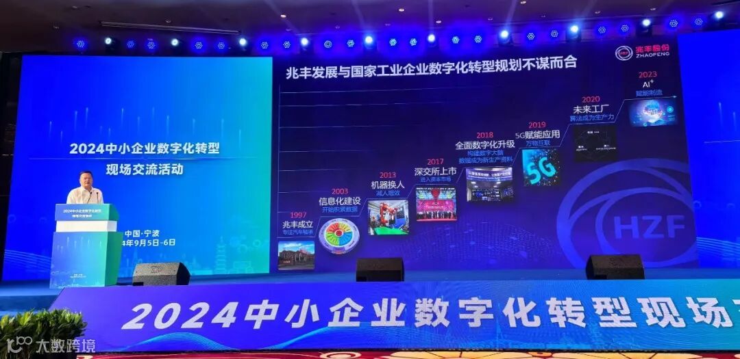 9月6日,2024中小企业数字化转型交流活动在浙江省宁波市举行,公司董事长孔爱祥作为受邀的两家重点中小企业数字化转型代表之一,在大会上作主题发言。