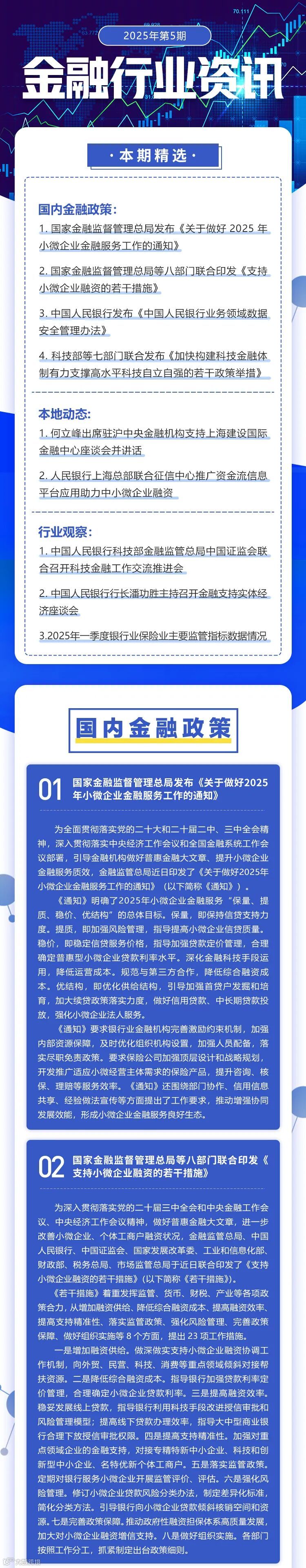 导读:国家金融监督管理总局发布《关于做好 2025 年小微企业金融服务工作的通知》