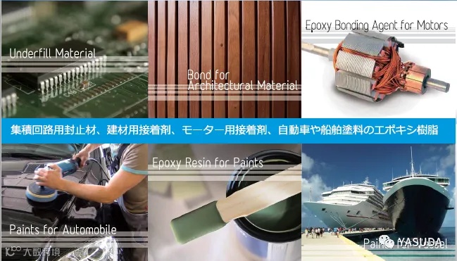 一般可用于对集成电路密封剂,建筑材料粘合剂,马达用粘合剂,汽车、船舶涂料用环氧树脂(热固性树脂)。