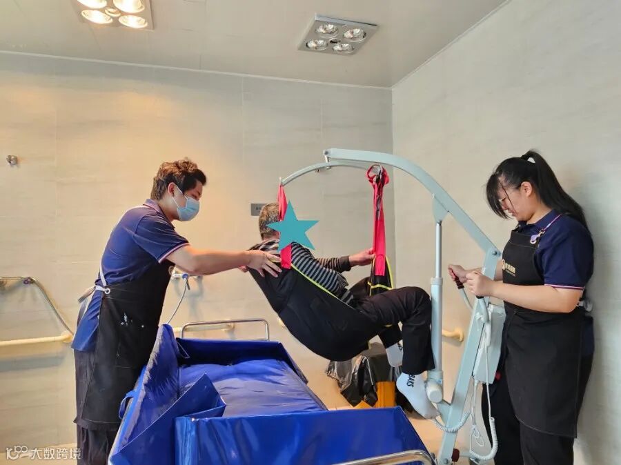 较多失能长者都无法自主移动,并且由于长期卧床,体重基数较大,移位机更好的辅助长者进行移动,配合洗澡床,让长者通过卧式的洗澡方式轻松洗澡,同时也能更好的将身体各个部分清洁到位。使用前后也都会进行全方位的消毒,保障长者卫生安全。
