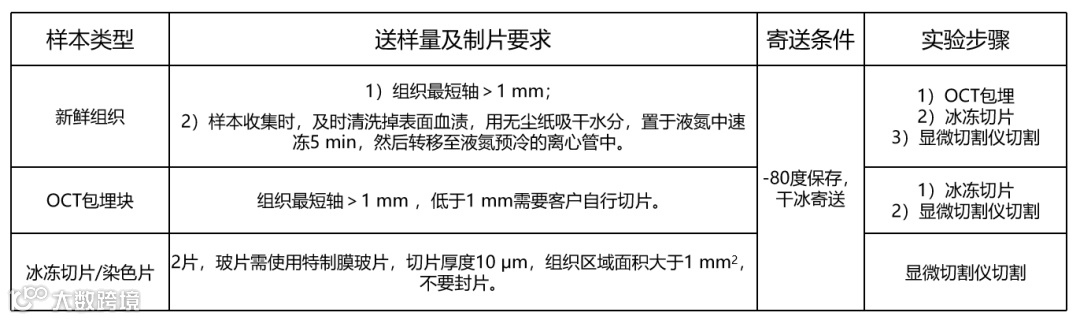 包括新鲜组织、OCT包埋块、冷冻切片/染