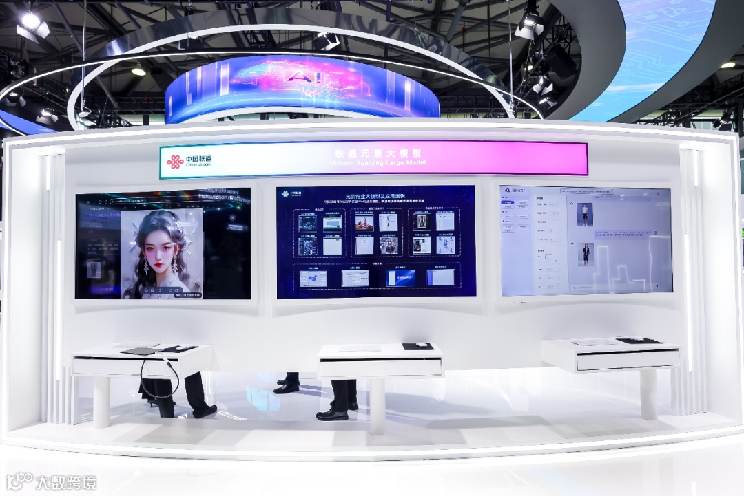 在AI能力展区,元景大模型惊艳亮相。联通元景“1+1+M”大模型体系是中国联通面向赋能实体经济业务需要自主研发的大模型系列产品,包括1套基础大模型+1个大模型平台+M种行业大模型。元景大模型MaaS平台拥有模型库、工具箱、原生应用商店三大板块,具备强大的“职业技能”,目前已服务于政务、城市治理、文创等领域。值得一提的是,随着“文博热”的兴起,中国联通与中国外文局联合打造了元景文创大模型,以“一键输入图文信息,即刻生成文物形象”这种简单有趣的强交互性圈粉无数。文物“活化”以智能“通”古今,吸引了现场众多观众驻足,激发了大家保护文物古迹、传承优秀文化的意识。