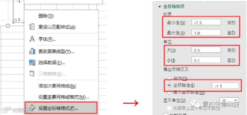 选中纵坐标,右击选择“设置坐标轴格式”。