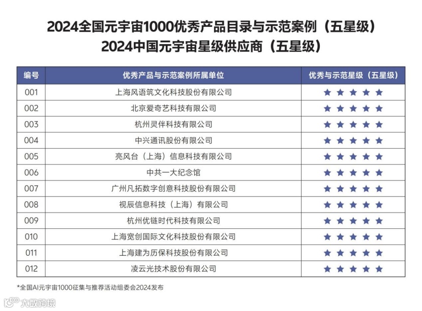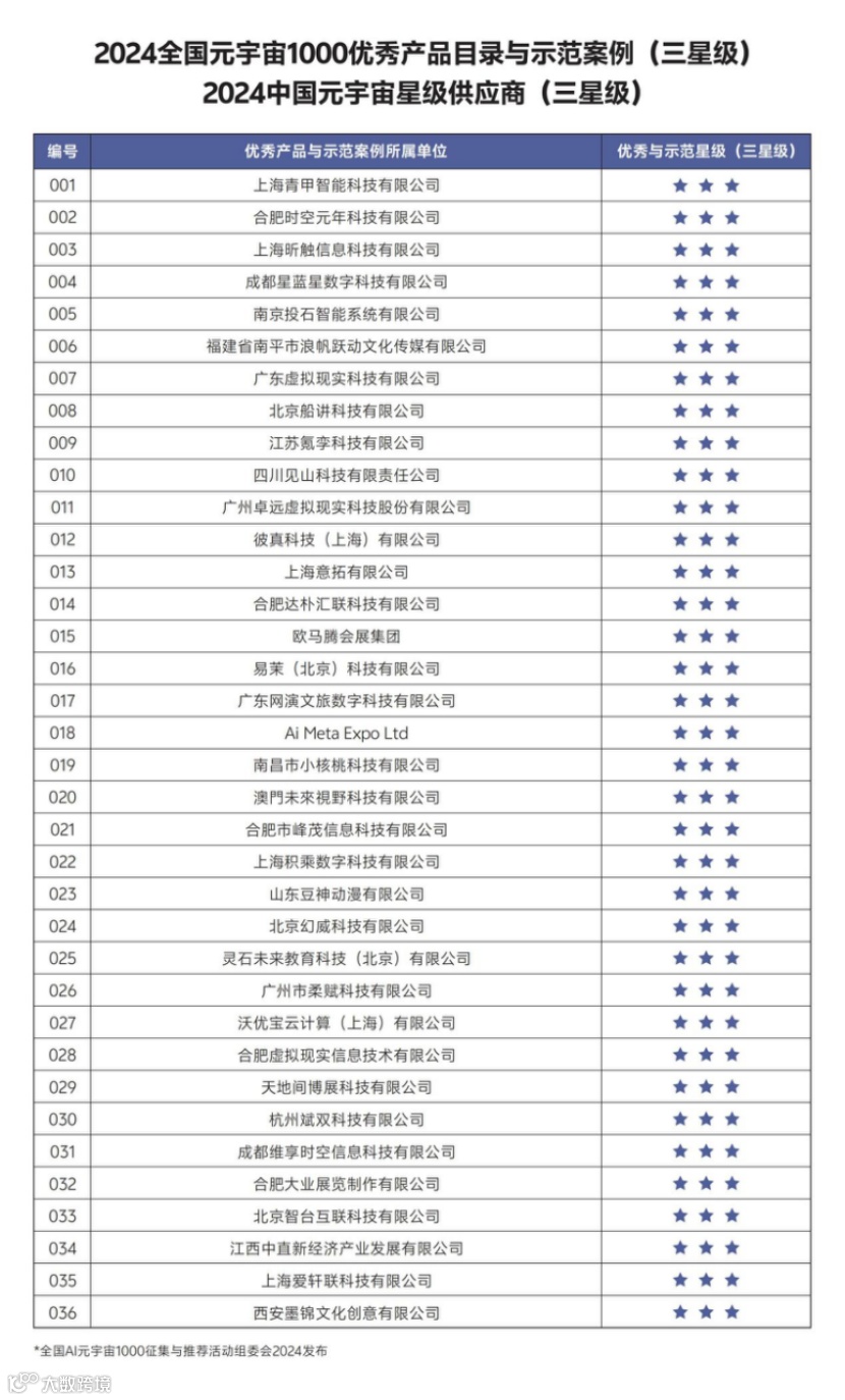附3:全国元宇宙1000优秀产品示范案例与星级供应商榜单