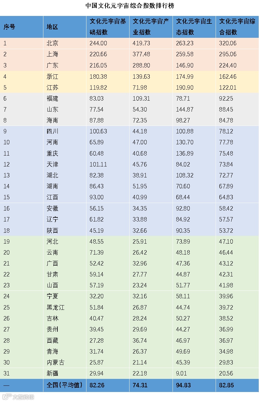 附2:中国文化元宇宙指数、中国数字文化产业指数和中国公共文化数字化指数排行榜