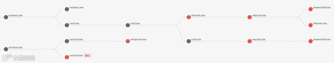 当用户运行下载的“WPS安装包”时,系统会通过 msiexec.exe 进程加载伪装安装文件(WPS_Office_Installer.msi)。它一边显示正常的安装界面,让用户以为一切正常,一边偷偷通过 cmd.exe 调用 wscript.exe,运行隐藏其中的恶意脚本,实现防御规避与持久化驻留,即绕过安全软件,设置开机自启动,实现长期潜伏。最终,木马释放并运行 internet.exe 进程,主动连接C2服务器,建立远程控制通道。