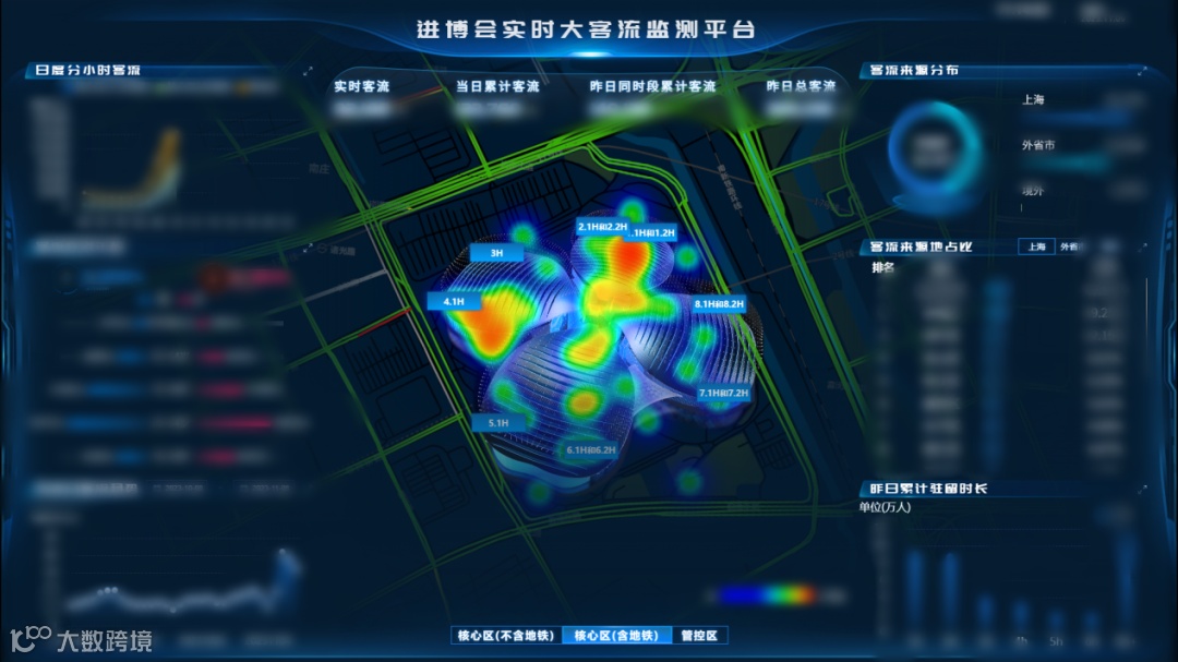 客流监测分析系统。上海联通构建进博会大客流预警预测模型,通过对信令数据特别是6小时驻留数据进行实时处理、计算和分析,实时掌握区域内客流分布及变化趋势,提升对大客流实时感知监测能力,为应对各类突发事件,提高协同联动应急处置效率,实现进博会长效的精细化、动态化、科学化保障管理提供数字化赋能支撑,有效保障进博会指挥管理的顺利进行。
