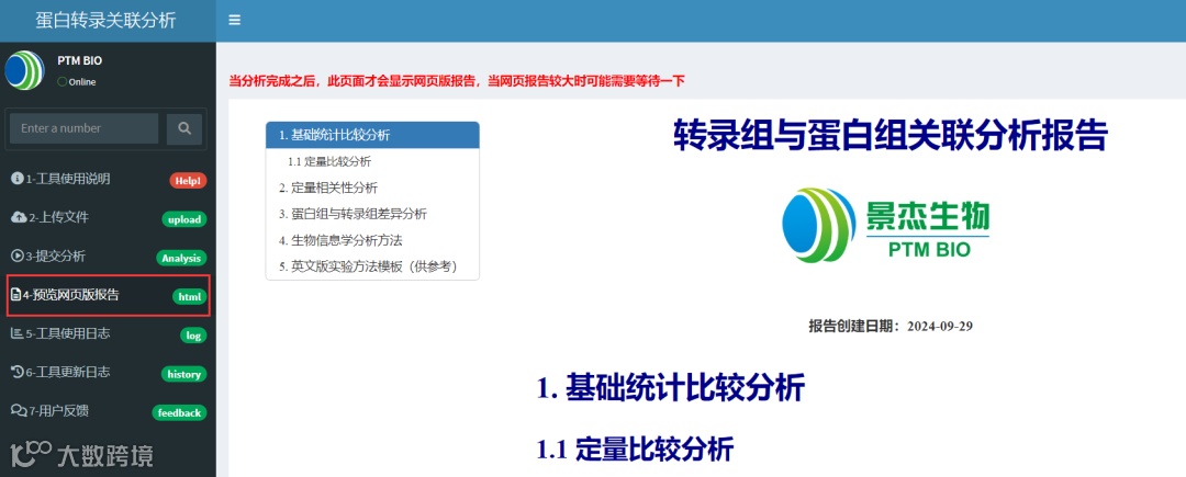 为方便大家进行分析,我们在景杰生信云平台部署了"蛋白转录关联分析"工具,可以在线使用此工具进行上述分析。工具首页界面如下: