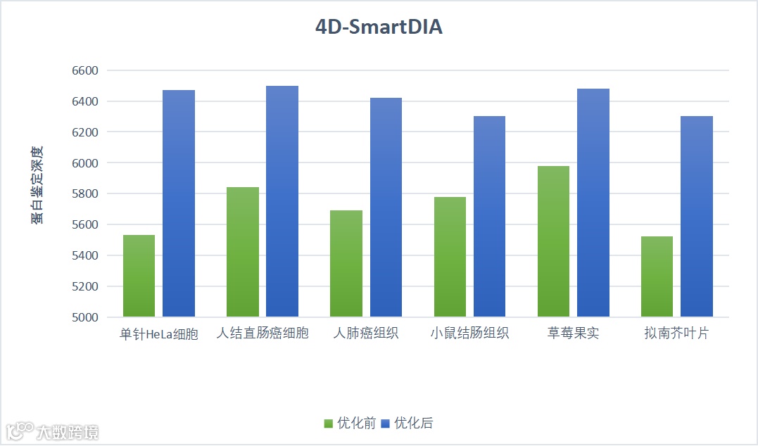 图1 4D-SmartDIA产品升级前后不同样本的蛋白鉴定深度数据
