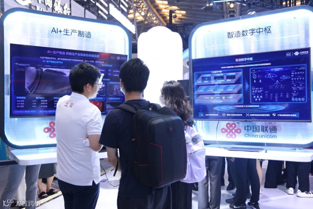 在“AI+工业”展区,中国联通充分展示了工业“端网云数用”一体化服务能力,围绕“AI+生产制造、AI+研发设计、AI+智能运维、AI+绿色低碳”等场景打造多个标杆案例。