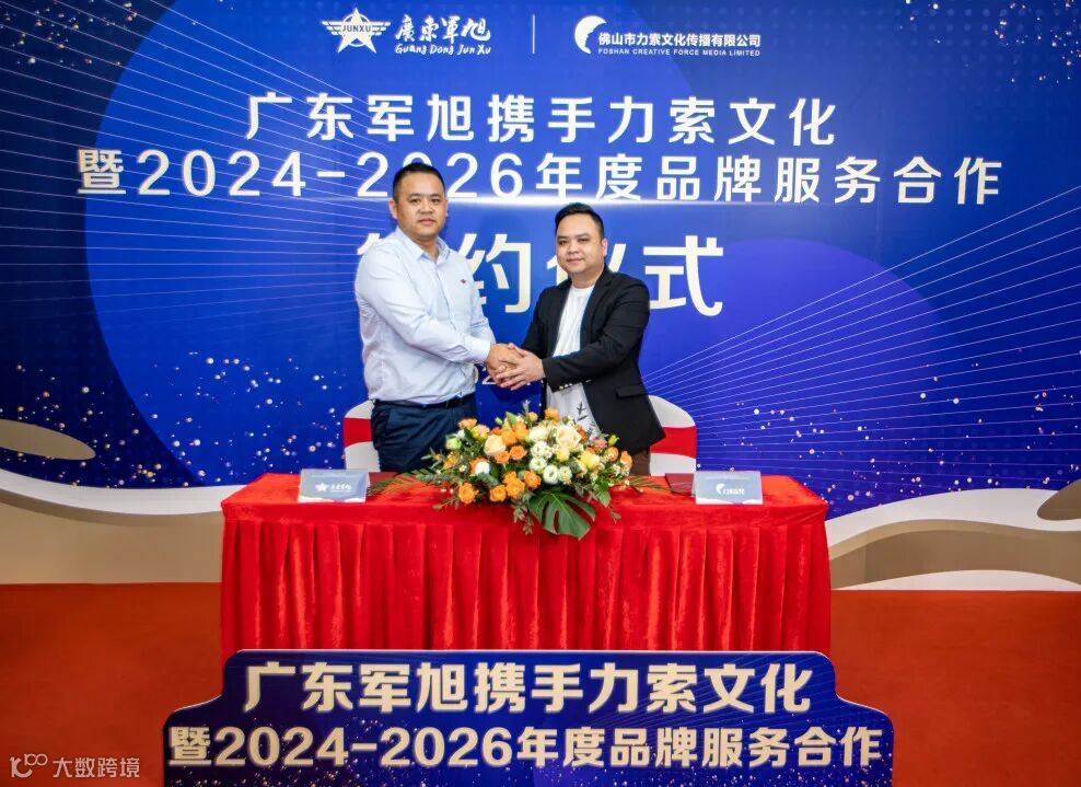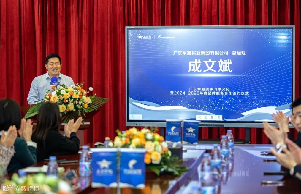2024年3月19日,广东军旭实业集团有限公司携手佛山市力索文化传播有限公司暨2024-2026年度品牌服务合作签约仪式在军旭·军创园内隆重举行,广东军旭董事长张安旭、总经理成文斌、副总经理谭光超、力索文化总经理盘历历、副总经理吴刘晓剑、孙锋等双方领导,以及两位特邀嘉宾艾玛鞋业总经理张君、佛山市玖伍柒科技有限公司总经理余巍出席并见证了本次签约仪式。